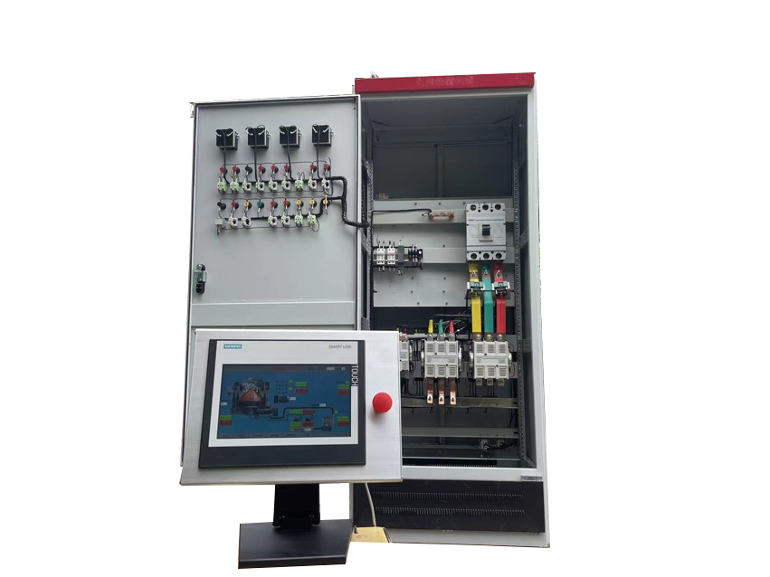 該控制柜采用西門(mén)子PLC控制;觸摸屏操作、控制、顯示為一體;具有一鍵啟動(dòng),智能化控制,電機(jī)的運(yùn)行適時(shí)監(jiān)控,各電機(jī)的相關(guān)關(guān)聯(lián)控制,真正做到了關(guān)聯(lián)控制、相互制約,顯示屏具備操作功能;顯示電壓、電機(jī)電流,工作狀態(tài)參數(shù)、故障報(bào)警、自動(dòng)停機(jī)等功能。
